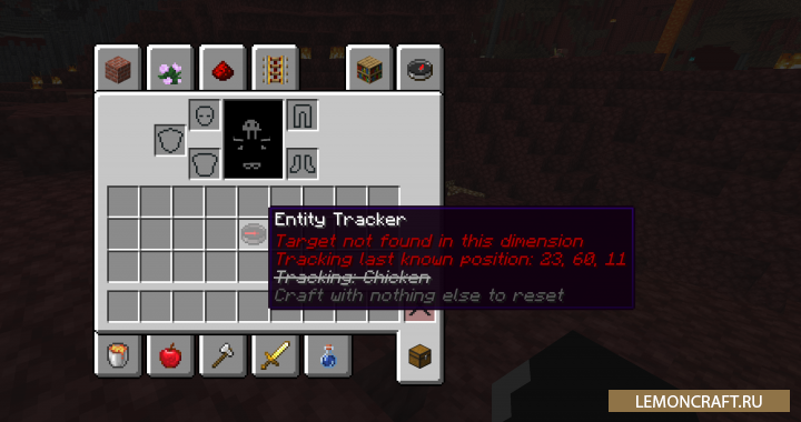 Мод на крутой компас Wren Sharp's Entity Tracker добавляет в игру новый, улучшенный компас с цветными стрелками. С помощью данного инструмента вы сможете вести наблюдение за выбранными вами мобами и игроками. Так же данный компас работает и с другими измерениями, если цели вашего поиска нет в этом мире, он вас приведет в нужный.